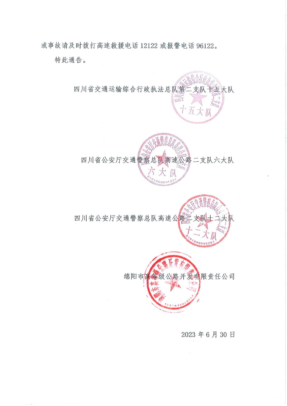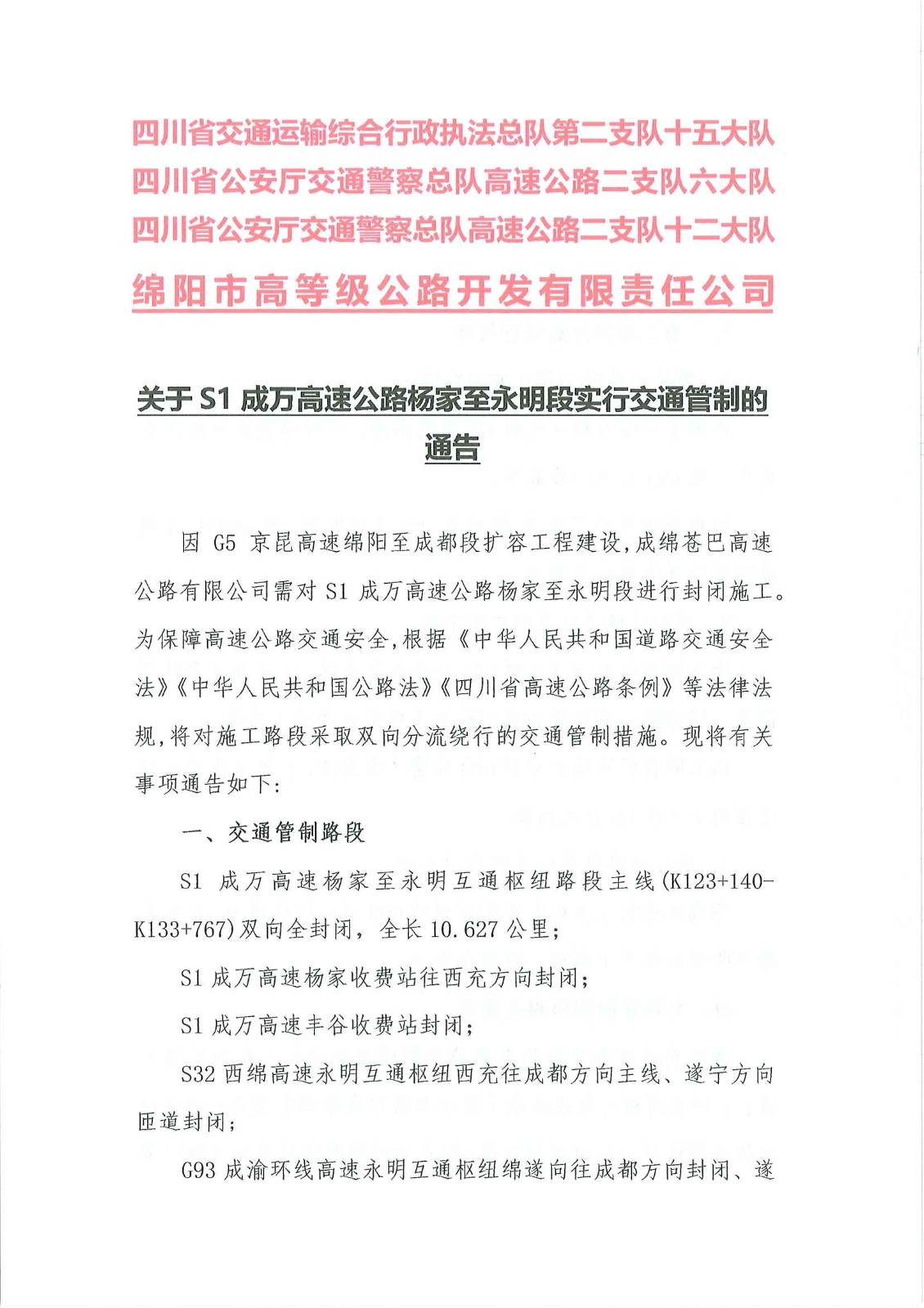 關(guān)于S1成萬高速公路楊家至永明段實行交通管制的通告