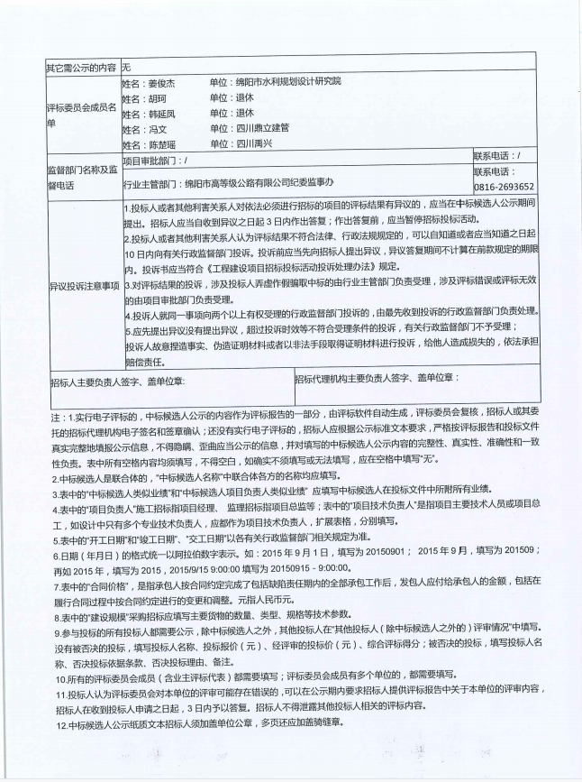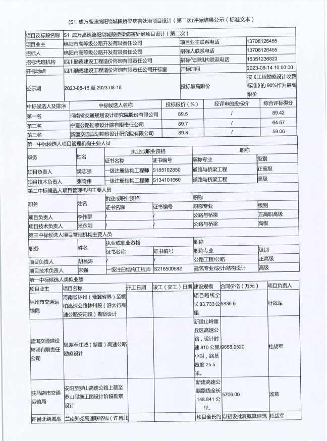 (S1 成萬高速綿陽繞城段橋梁病害處治項目設(shè)計(第二次)評標(biāo)結(jié)果公示(標(biāo)準(zhǔn)文本)